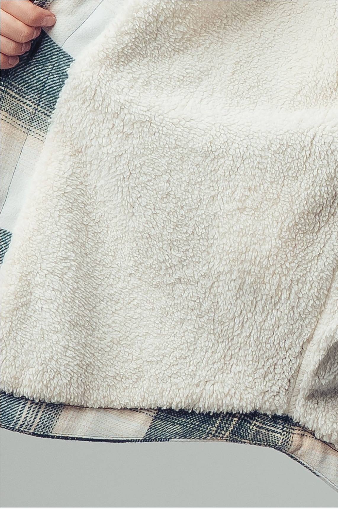 • Shell Material: 100% Polyester • Lining Material: 100% Polyester (Plush Sherpa) • Design: A classic plaid shirt jacket style with a button front and chest pockets • Fit: Intentionally oversized and relaxed for easy layering over sweaters • Details: Fully lined with ultra-soft sherpa for maximum warmth • Measurements (Size M): 22" Bust, 30.5" Length, 21.5" Sleeve