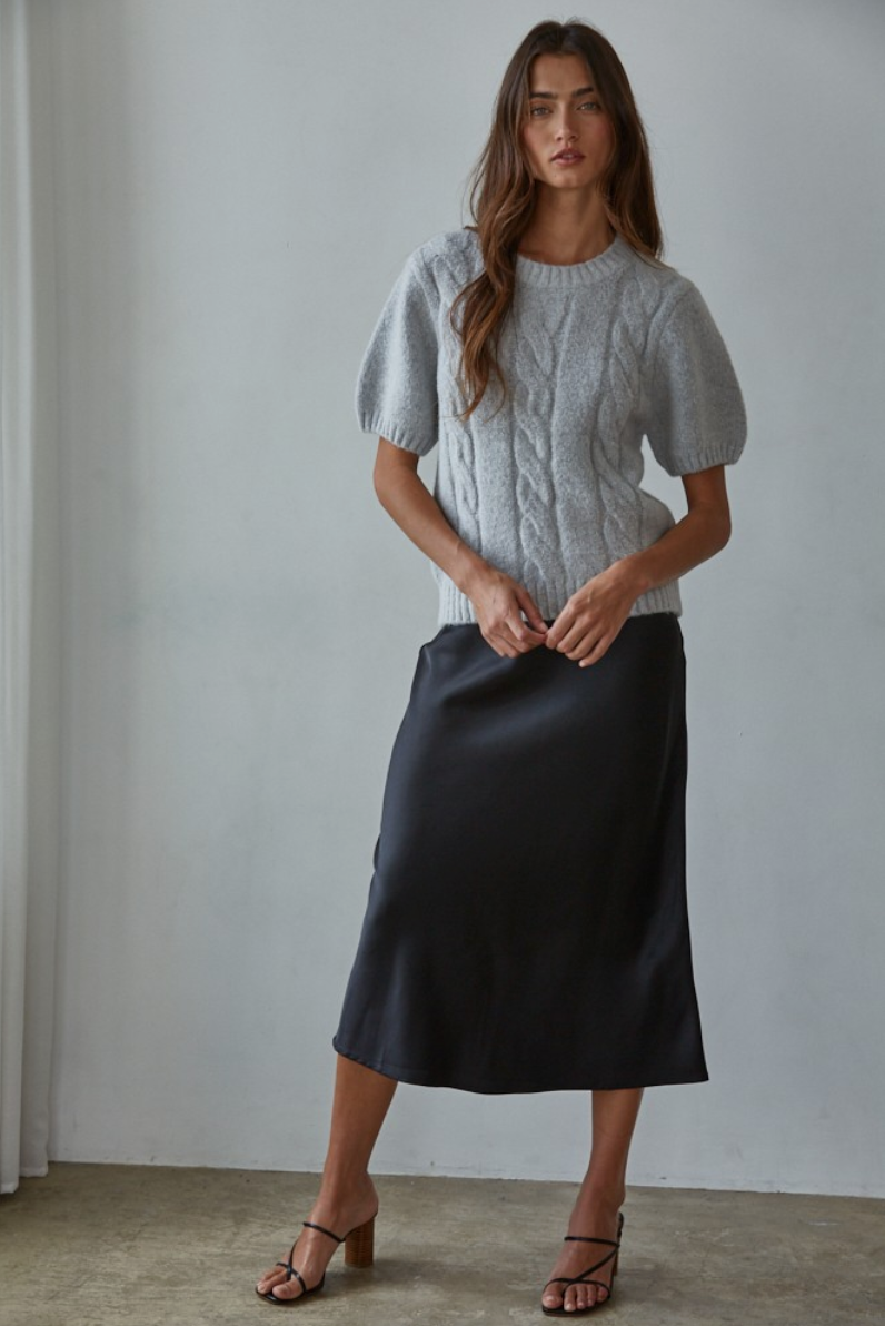 Short Sleeve Sweater with Cable Detail (3 colors)