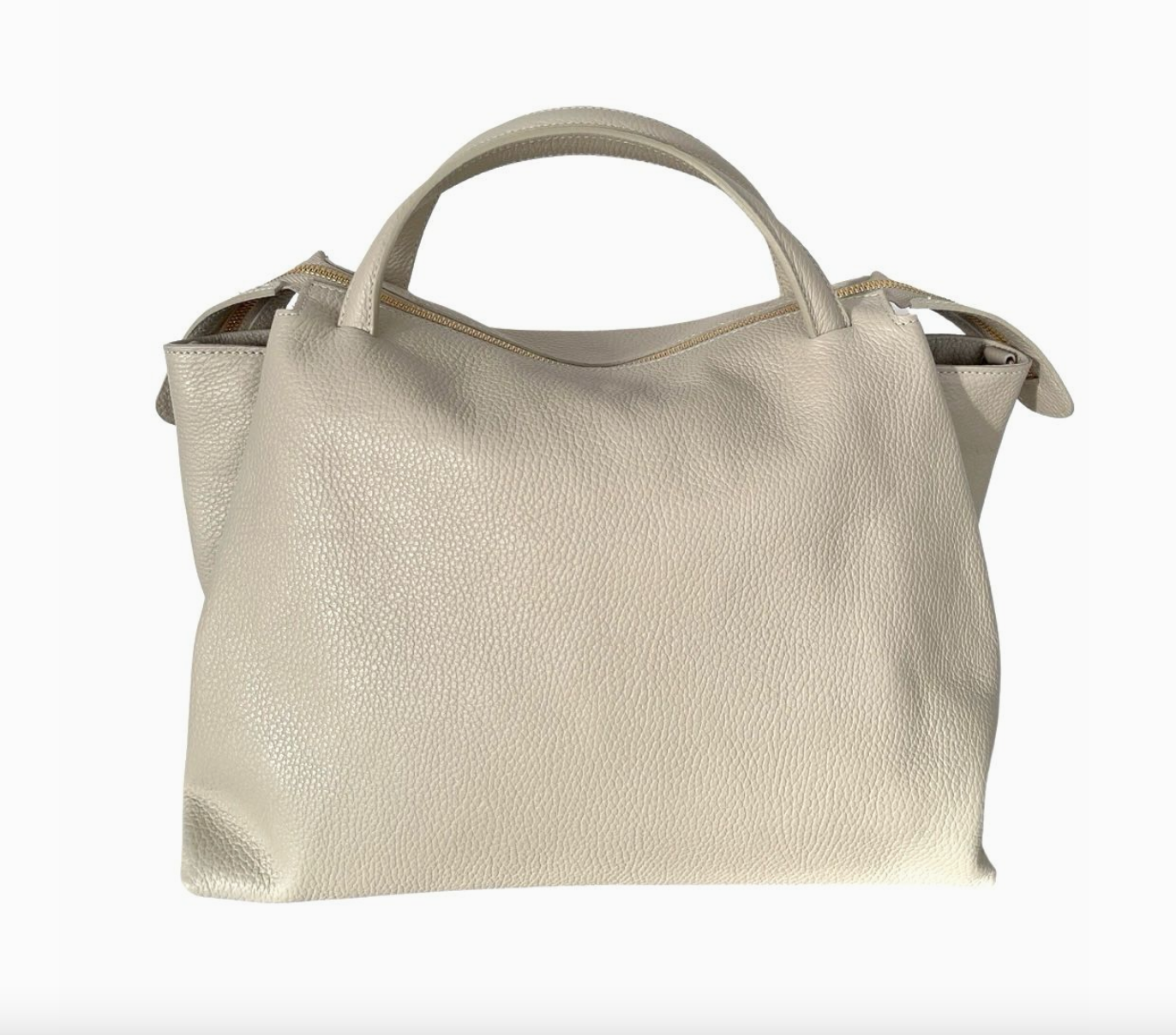 The perfect travel companion! This gorgeous soft leather top handle large tote has one main compartment with side zippered pocket. Adjustable removable and adjustable crossbody leather strap Made in Italy 14x10.5x8 inches