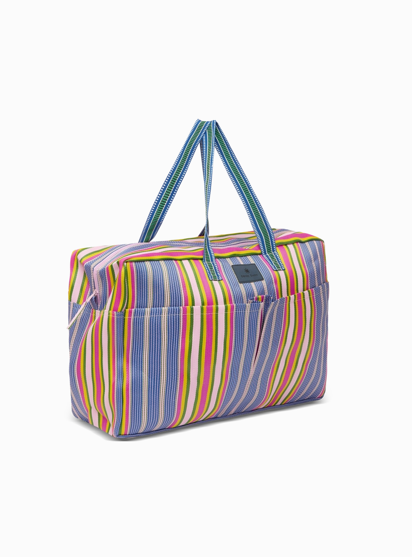 Make every travel experience a stylish one with Gunes's weekend bag. It’s been crafted in India from recycled nylon and fitted with sturdy top shoulder handles. Inside, there’s enough space for a few outfit changes, your tech and cosmetics case. made in India zip closure inside pocket recycled nylon 20" x 15" x 7"
